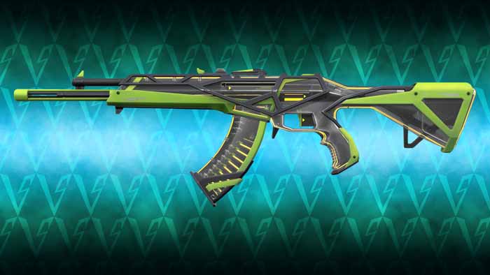 The Valorant RGX 11Z Pro Vandal is part of a new skin collection with a release date of Oct 6th 2021. The set includes a sword melee weapon, frenzy pistol, stinger, guardian and vandal. Each Valorant skins comes with three variants in red, blue and yellow, and also have LEDs which change into four colours. The skins have a modern design of bare metal and green tones.